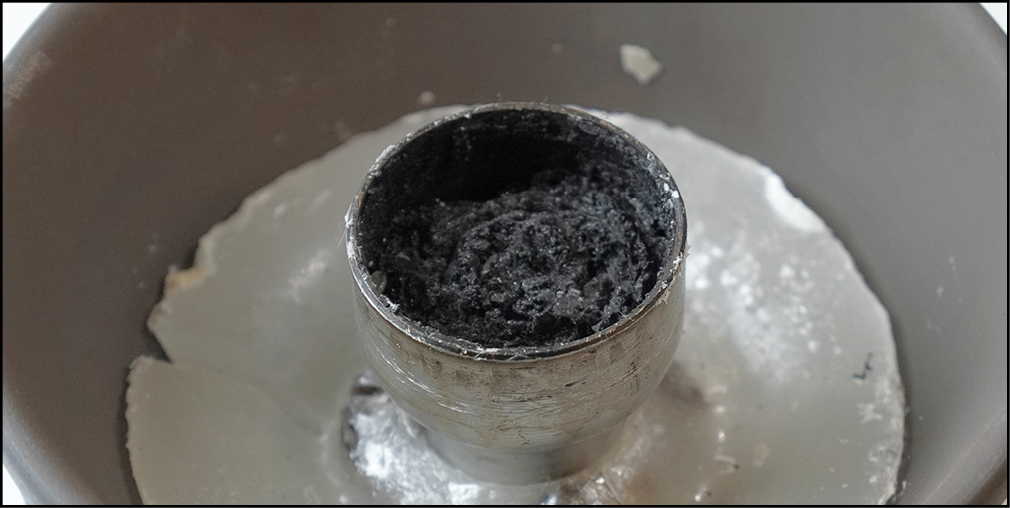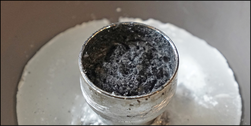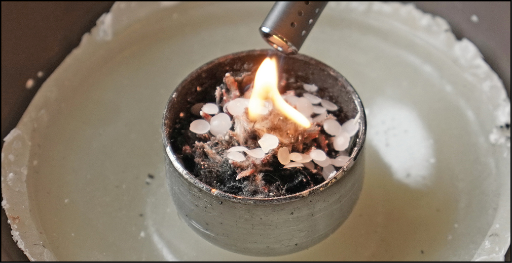 Der Docht setzt mit der Zeit etwas Ruß an der Oberfläche an, das Schmelzfeuer lässt sich schlecht oder gar nicht entzünden. Die schwarze Kruste bietet der Flamme keine Angriffsfläche, sie muss entfernt werden.