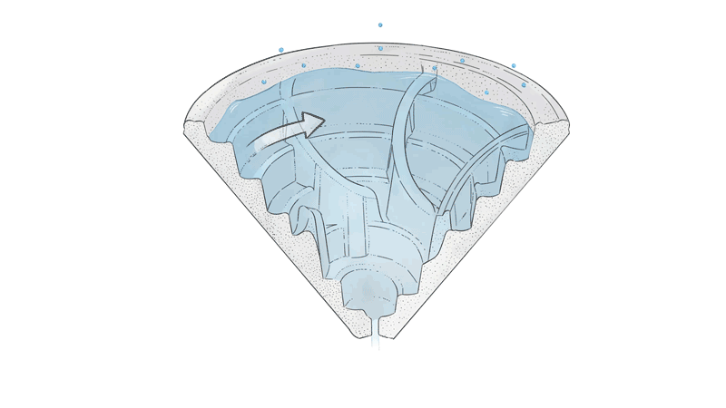 • Erzeugt rechtsdrehendes Wasser (zum Patent angemeldet)