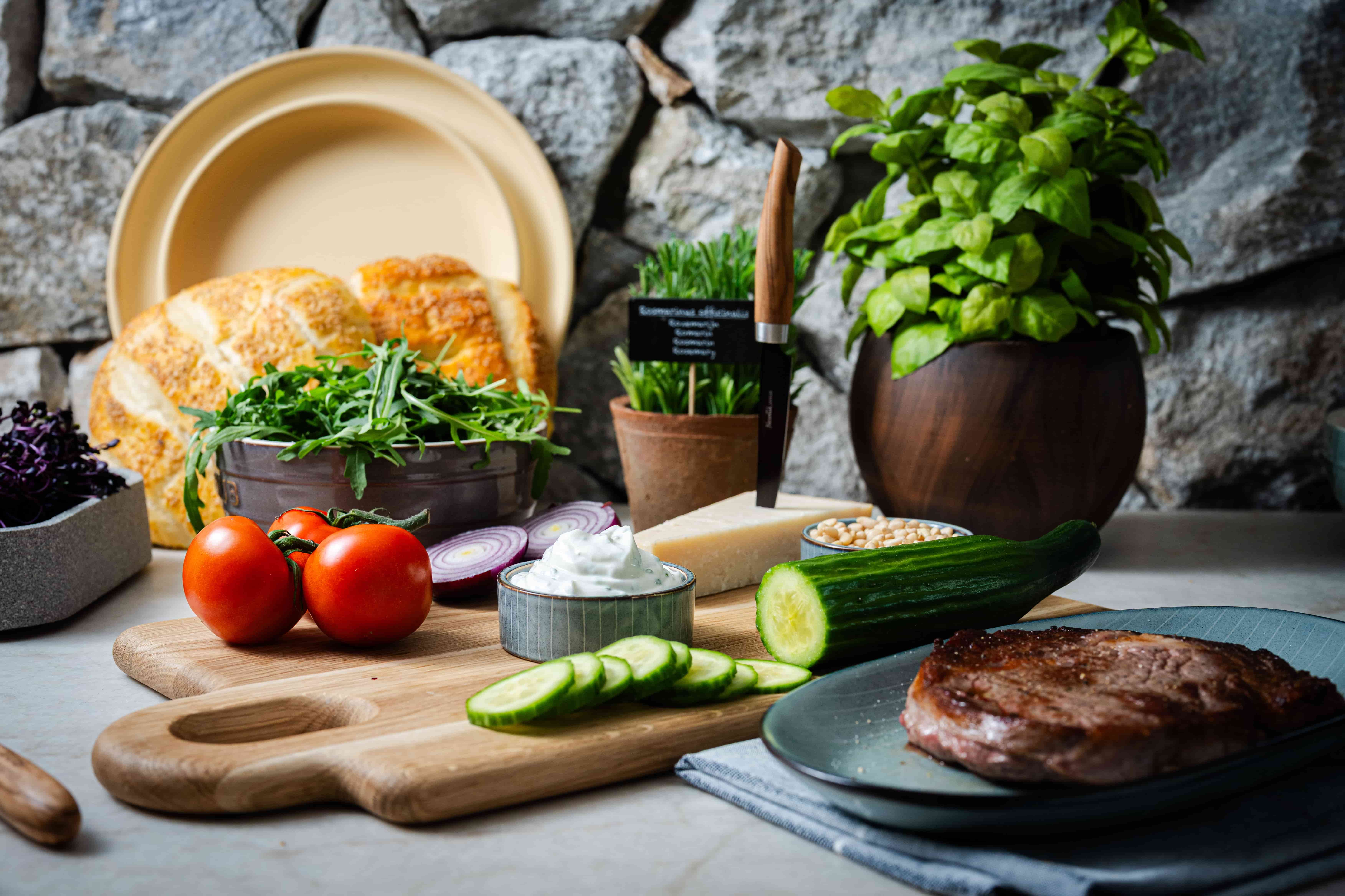 Der Döner ist längst mehr als schneller Imbiss. Wer ihn selbst zubereitet, hebt das beliebte Streetfood auf ein ganz neues Niveau. Vom frisch gebackenen Fladenbrot über raffinierte Soßen bis hin zu außergewöhnlichen Belägen entsteht ein Döner, der Individualität und Qualität vereint. Das Fladenbrot bietet die perfekte Grundlage, um kreative und leckere Varianten zuzubereiten. In diesem Beitrag wollen wir Ideen anregen, einen eigenen Döner zu kreieren, ganz nach Ihrem Geschmack oder eben einmal anders. Der Sternekoch Andreas Rehberger vom Schlosshotel Hohenstein hat uns hierfür extra 3 exquisite Saucen-Rezepte entwickelt. Überraschen Sie Ihre Familie mit einem außergewöhnlichen Döner, den es so an keiner Bude zu kaufen gibt.