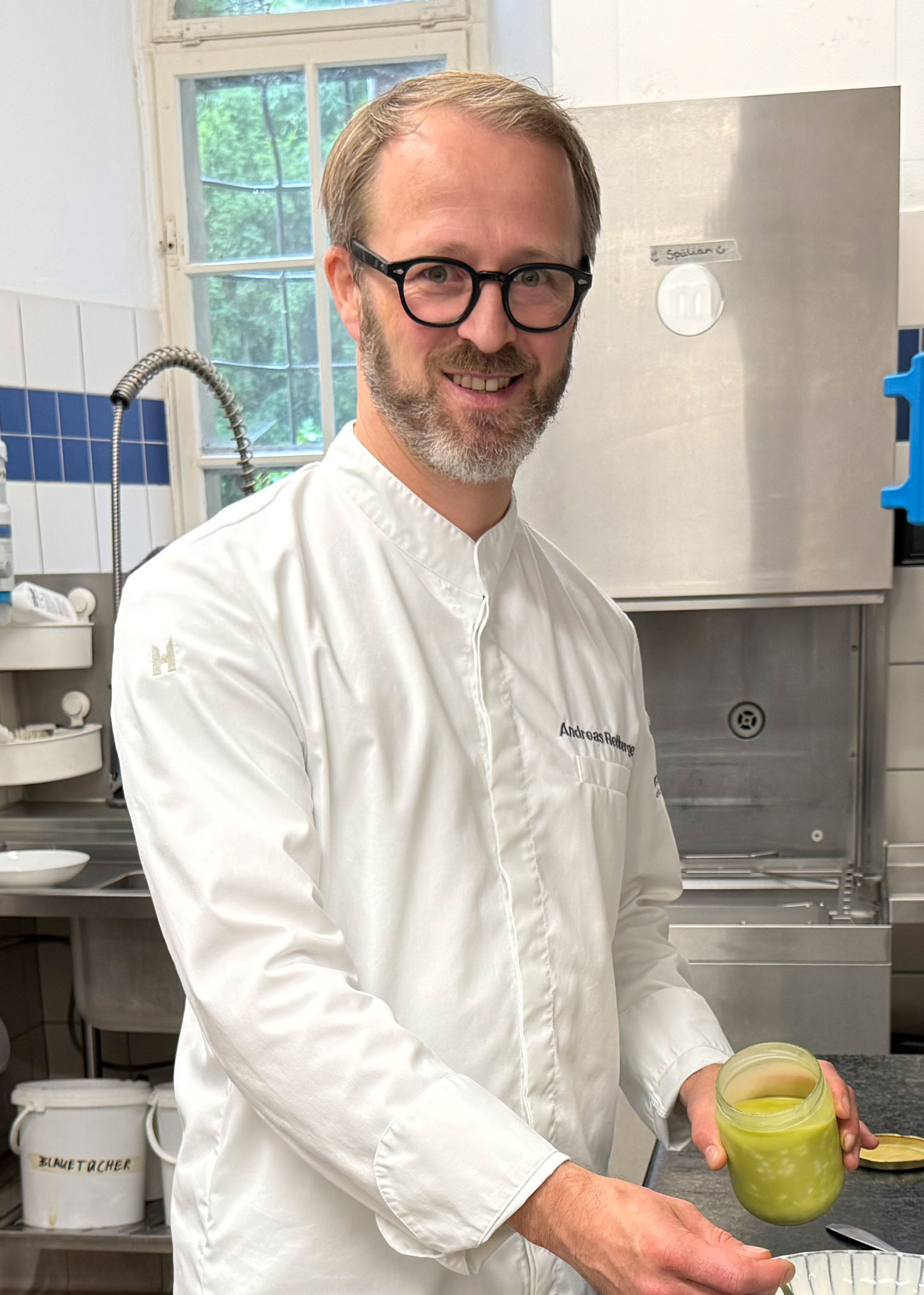 Andreas Rehberger führt zusammen mit seiner Frau Alexandra das romatische Schlosshotel Hohenstein. Die Karte des mit dem Grünen Michelin Stern ausgezeichneten Restaurants ist geprägt von frischen, saisonalen und regionalen Zutaten, die fein aufeinander abgestimmt werden. Das Ambiente ist märchenhaft, mit charmanten Service und exzellenter Weinauswahl bleiben keine Wünsche offen.