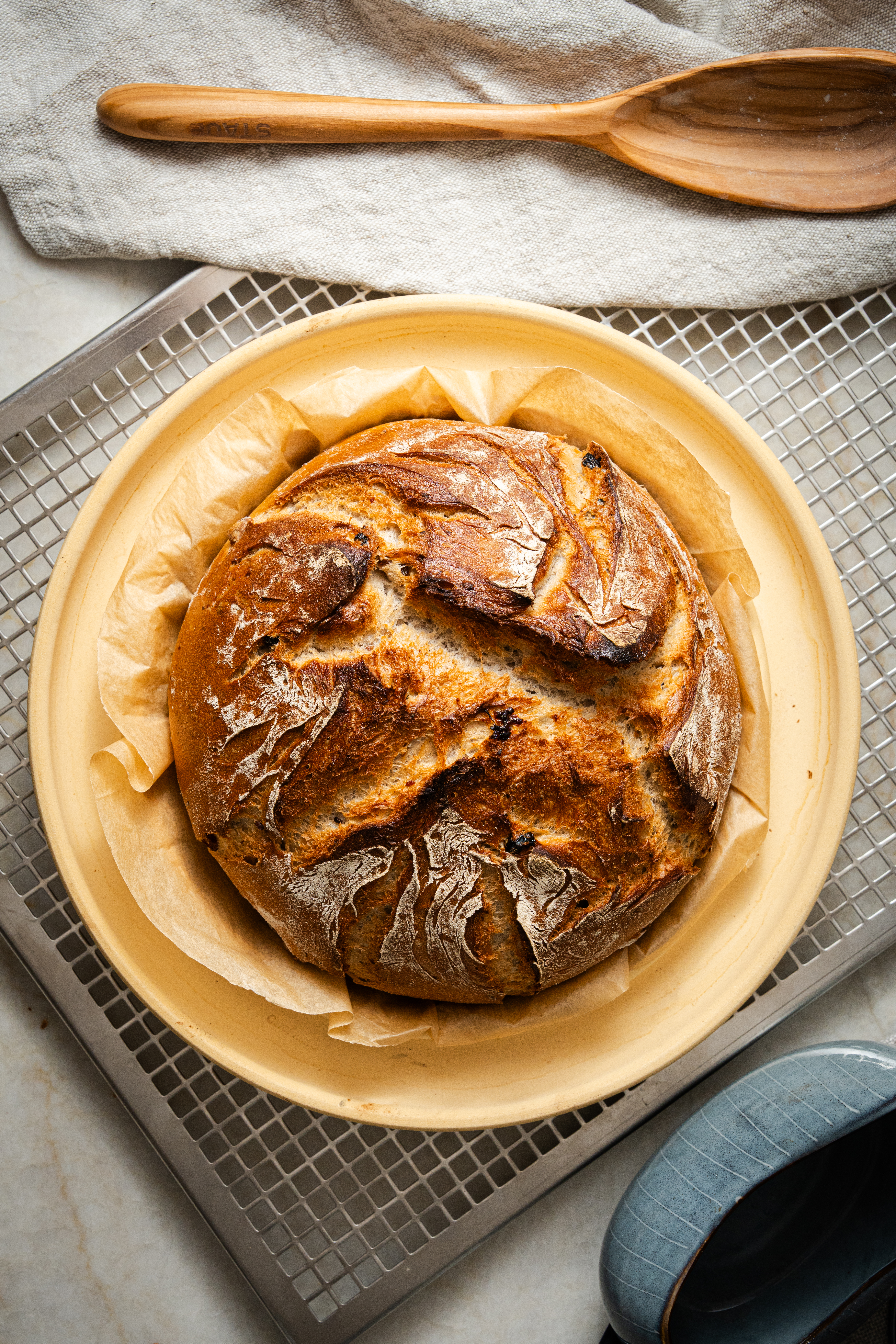 - Das fertige Brot auf einem Gitter auskühlen lassen und genießen – außen knusprig, innen wunderbar aromatisch und saftig.