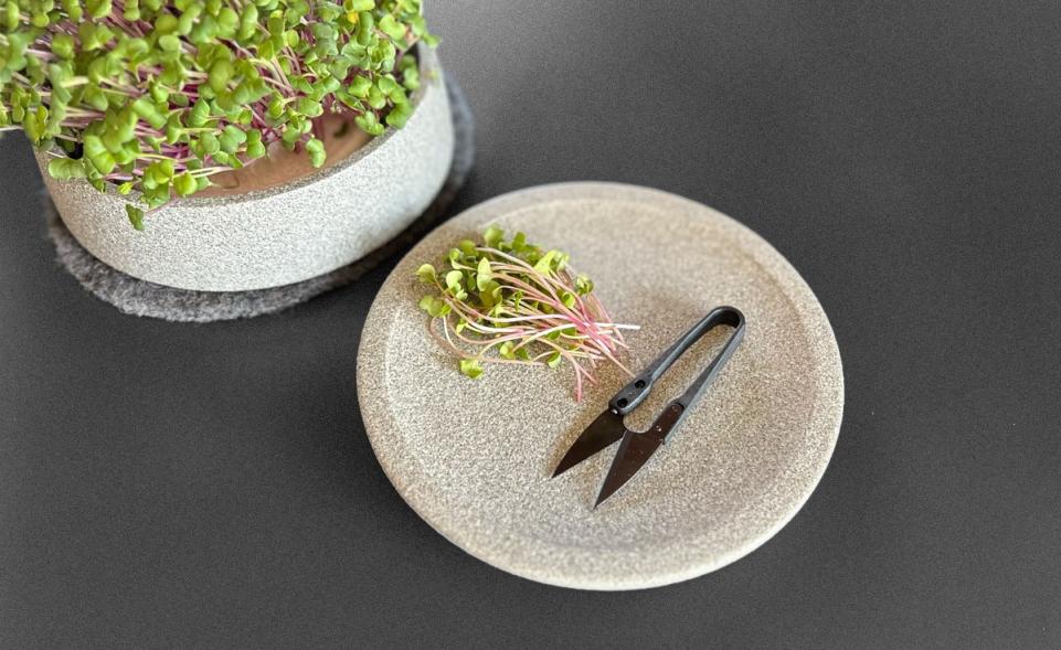 Die formschöne Schere ist die ideale Ergänzung zu unserem Mikrogarten. Mit ihrer feinen Spitze schneidet sie Microgreens besonders präzise und schonend. Die kompakte Größe ermöglicht ein müheloses Arbeiten direkt am Keimstein – ohne die jungen Pflanzen zu beschädigen. Sie liegt angenehm in der Hand und lässt sich leicht reinigen.